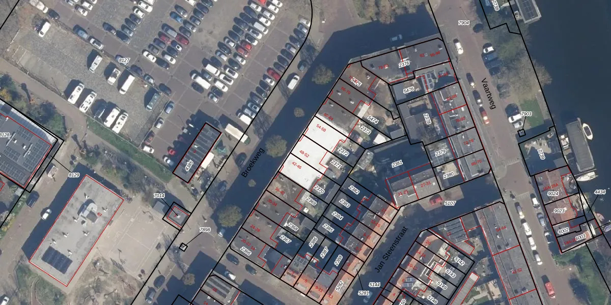 Broekweg 52 is gelegen op kadastraal perceel VDG00D2371. Deze kadastrale aanduiding is uniek en wordt gebruikt door het Kadaster om eigendomsrechten en andere zakelijke rechten vast te leggen. Het perceel maakt onderdeel uit van de kadastrale gemeente Vlaardingen.