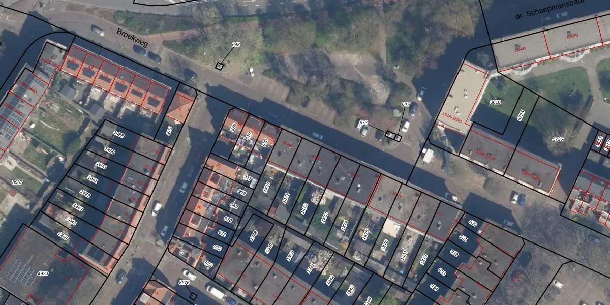 Broekweg 53 is gelegen op kadastraal perceel VDG00D1471. Deze kadastrale aanduiding is uniek en wordt gebruikt door het Kadaster om eigendomsrechten en andere zakelijke rechten vast te leggen. Het perceel maakt onderdeel uit van de kadastrale gemeente Vlaardingen.