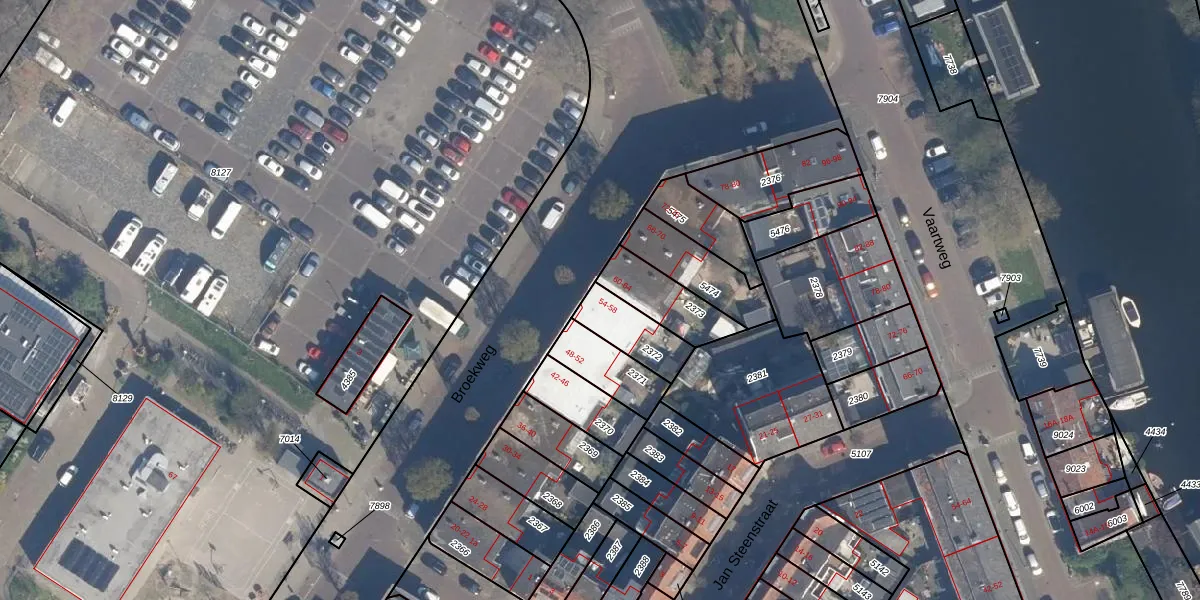 Broekweg 56 is gelegen op kadastraal perceel VDG00D2372. Deze kadastrale aanduiding is uniek en wordt gebruikt door het Kadaster om eigendomsrechten en andere zakelijke rechten vast te leggen. Het perceel maakt onderdeel uit van de kadastrale gemeente Vlaardingen.