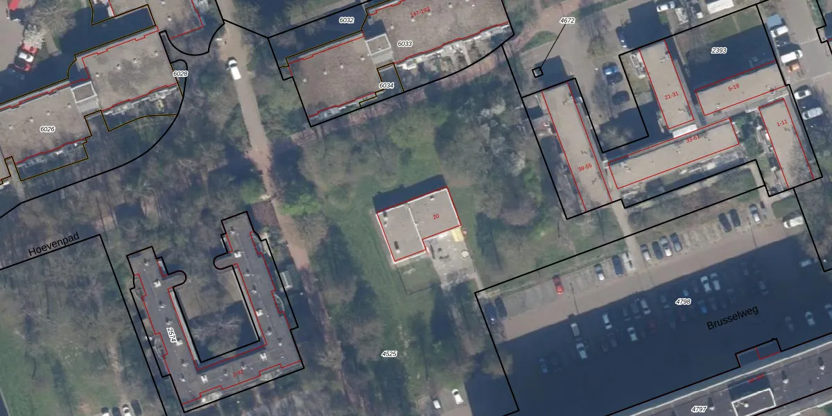 Brusselweg 20 is gelegen op kadastraal perceel VDG00K4525. Deze kadastrale aanduiding is uniek en wordt gebruikt door het Kadaster om eigendomsrechten en andere zakelijke rechten vast te leggen. Het perceel maakt onderdeel uit van de kadastrale gemeente Vlaardingen.