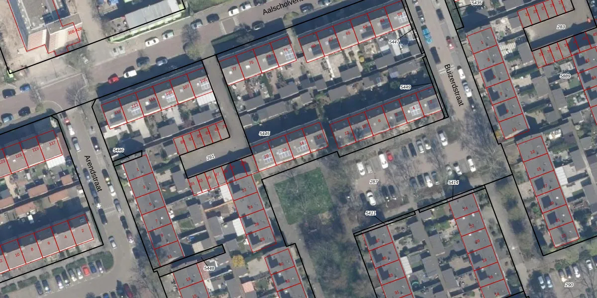 Buizerdstraat 16 is gelegen op kadastraal perceel VDG00K5445. Deze kadastrale aanduiding is uniek en wordt gebruikt door het Kadaster om eigendomsrechten en andere zakelijke rechten vast te leggen. Het perceel maakt onderdeel uit van de kadastrale gemeente Vlaardingen.