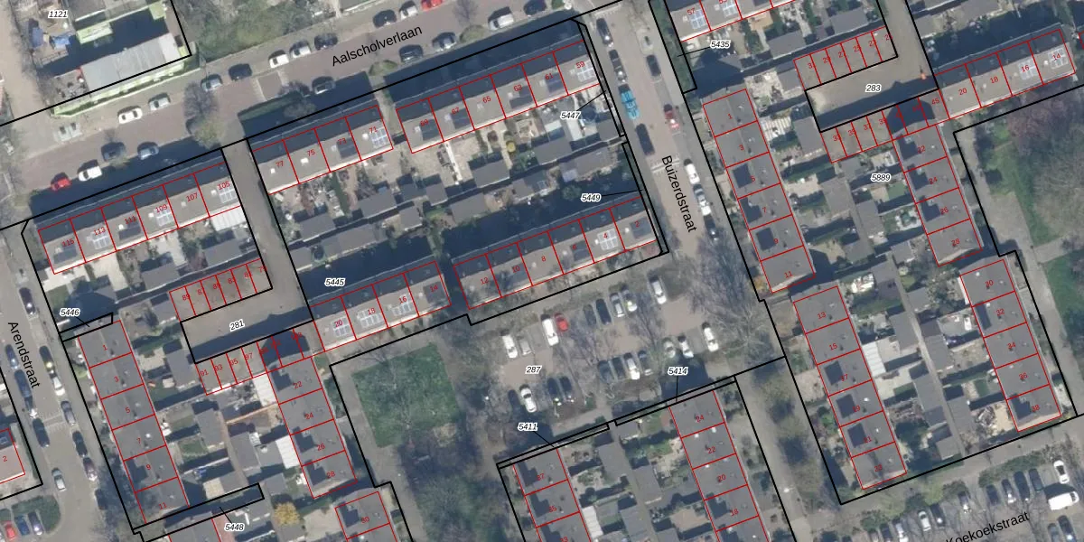 Buizerdstraat 8 is gelegen op kadastraal perceel VDG00K5445. Deze kadastrale aanduiding is uniek en wordt gebruikt door het Kadaster om eigendomsrechten en andere zakelijke rechten vast te leggen. Het perceel maakt onderdeel uit van de kadastrale gemeente Vlaardingen.
