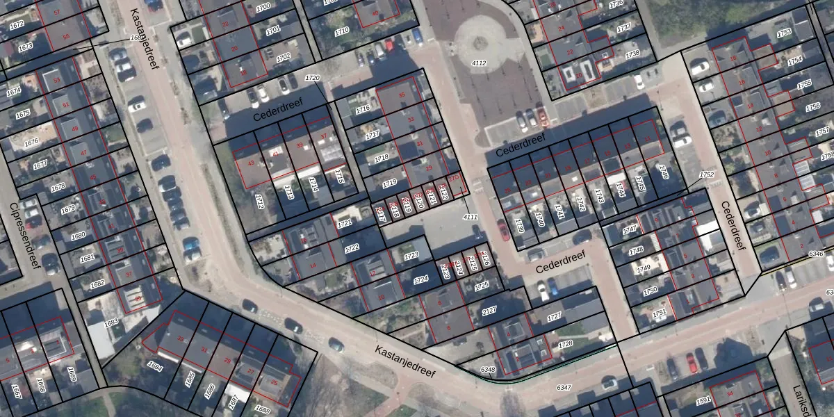 Het perceel waarop Cederdreef 27-D staat heeft een oppervlakte van 19 m². Dit is een klein perceel. De perceeloppervlakte wordt geregistreerd door het Kadaster. Gedetailleerde informatie over de maten van dit perceel kunt u vinden in het rapport Kadastrale kaart met maatvoering van Cederdreef 27-D.