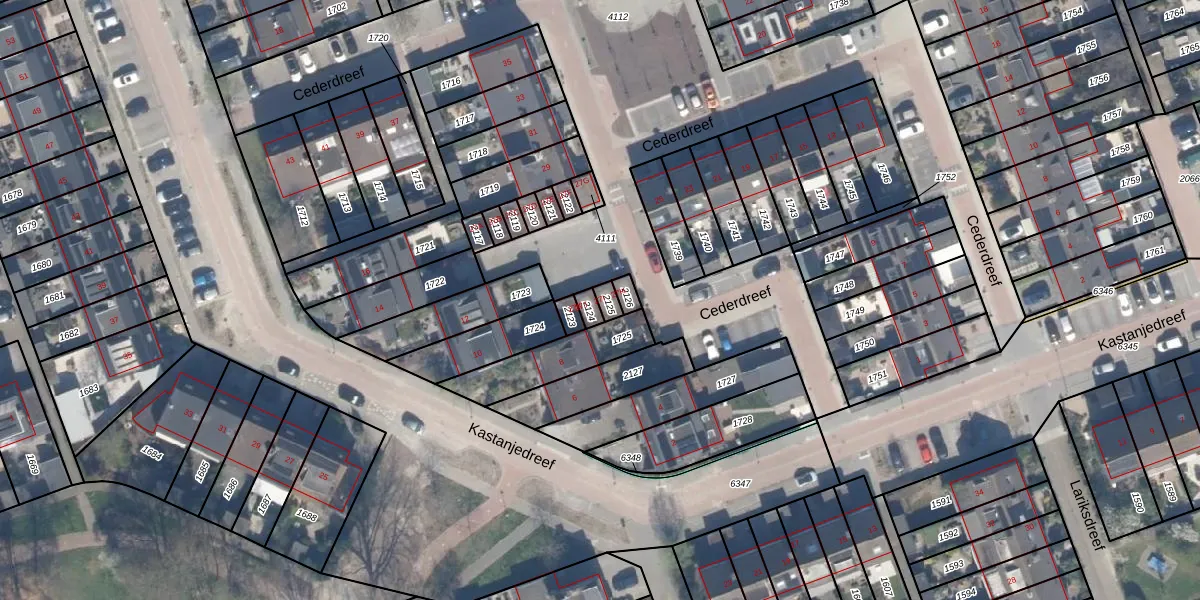 Het perceel waarop Cederdreef 27-I staat heeft een oppervlakte van 20 m². Dit is een klein perceel. De perceeloppervlakte wordt geregistreerd door het Kadaster. Gedetailleerde informatie over de maten van dit perceel kunt u vinden in het rapport Kadastrale kaart met maatvoering van Cederdreef 27-I.