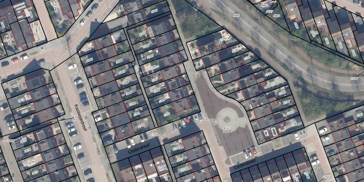 Cederdreef 42 is gelegen op kadastraal perceel VDG00K1709. Deze kadastrale aanduiding is uniek en wordt gebruikt door het Kadaster om eigendomsrechten en andere zakelijke rechten vast te leggen. Het perceel maakt onderdeel uit van de kadastrale gemeente Vlaardingen.