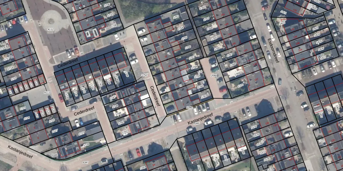 Cederdreef 6 is gelegen op kadastraal perceel VDG00K1759. Deze kadastrale aanduiding is uniek en wordt gebruikt door het Kadaster om eigendomsrechten en andere zakelijke rechten vast te leggen. Het perceel maakt onderdeel uit van de kadastrale gemeente Vlaardingen.