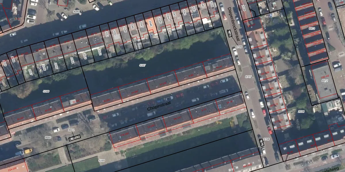 Het perceel waarop Chopinstraat 10 staat heeft een oppervlakte van 2280 m². Dit is een zeer groot perceel. De perceeloppervlakte wordt geregistreerd door het Kadaster. Gedetailleerde informatie over de maten van dit perceel kunt u vinden in het rapport Kadastrale kaart met maatvoering van Chopinstraat 10.