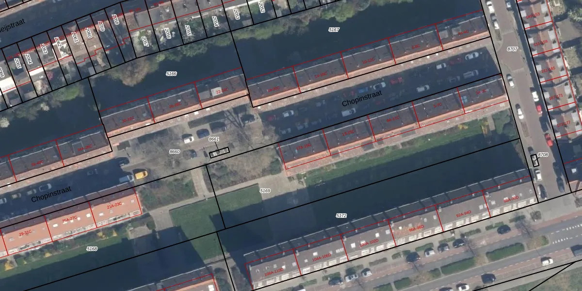 Het perceel waarop Chopinstraat 17-C staat heeft een oppervlakte van 2447 m². Dit is een zeer groot perceel. De perceeloppervlakte wordt geregistreerd door het Kadaster. Gedetailleerde informatie over de maten van dit perceel kunt u vinden in het rapport Kadastrale kaart met maatvoering van Chopinstraat 17-C.