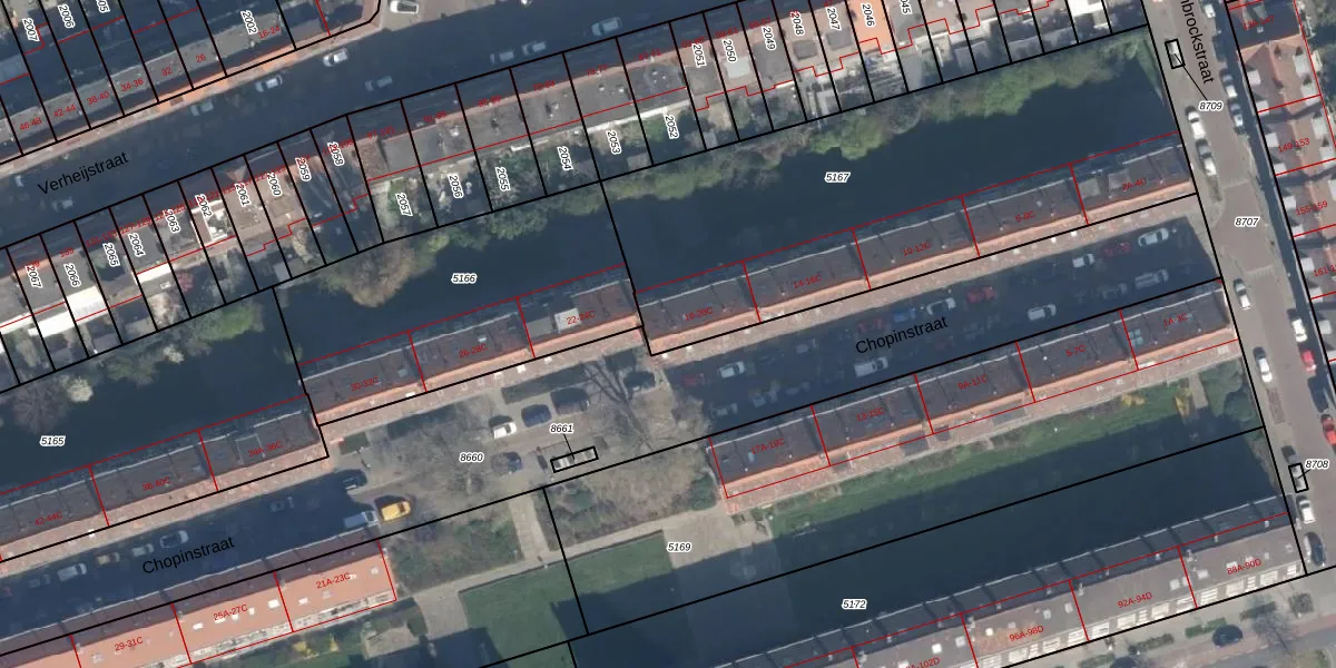 Chopinstraat 20-A is gelegen op kadastraal perceel VDG00D5167. Deze kadastrale aanduiding is uniek en wordt gebruikt door het Kadaster om eigendomsrechten en andere zakelijke rechten vast te leggen. Het perceel maakt onderdeel uit van de kadastrale gemeente Vlaardingen.