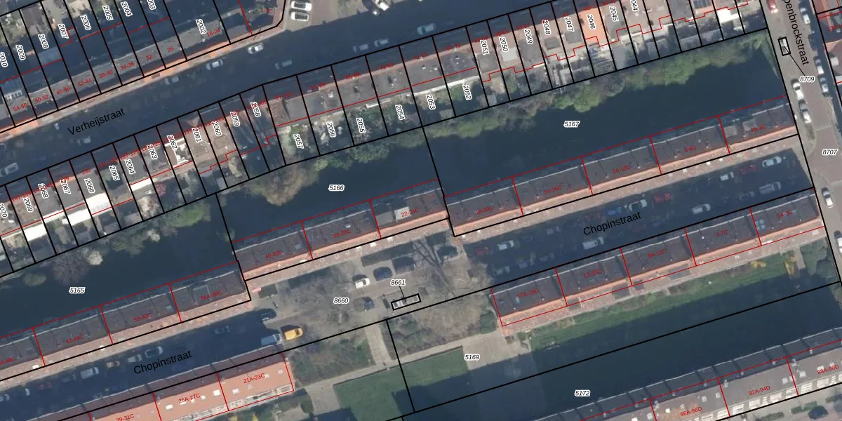 Chopinstraat 22-B is gelegen op kadastraal perceel VDG00D5166. Deze kadastrale aanduiding is uniek en wordt gebruikt door het Kadaster om eigendomsrechten en andere zakelijke rechten vast te leggen. Het perceel maakt onderdeel uit van de kadastrale gemeente Vlaardingen.
