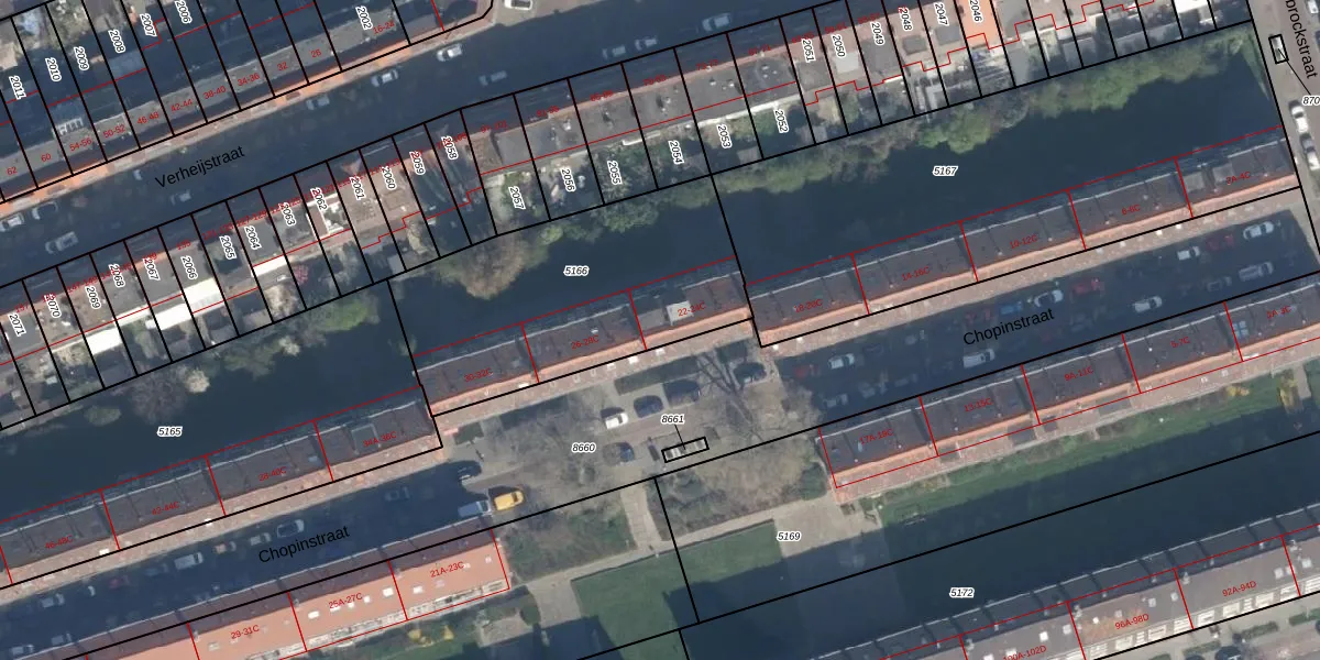 Chopinstraat 24-A is gelegen op kadastraal perceel VDG00D5166. Deze kadastrale aanduiding is uniek en wordt gebruikt door het Kadaster om eigendomsrechten en andere zakelijke rechten vast te leggen. Het perceel maakt onderdeel uit van de kadastrale gemeente Vlaardingen.