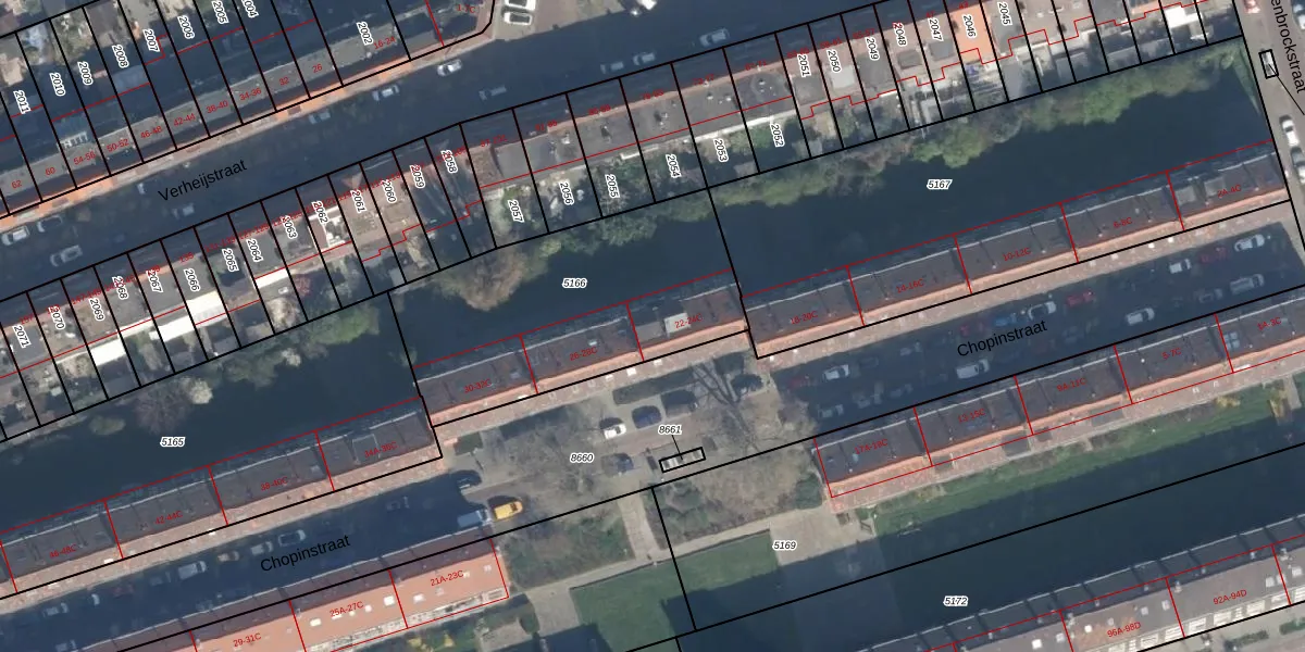 Chopinstraat 24-C is gelegen op kadastraal perceel VDG00D5166. Deze kadastrale aanduiding is uniek en wordt gebruikt door het Kadaster om eigendomsrechten en andere zakelijke rechten vast te leggen. Het perceel maakt onderdeel uit van de kadastrale gemeente Vlaardingen.