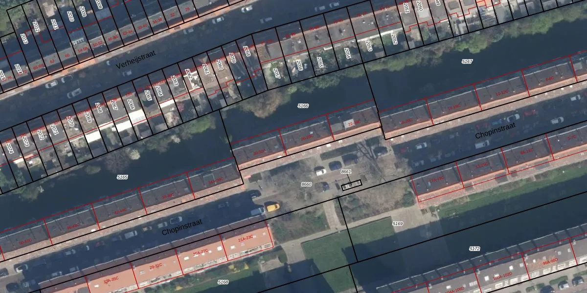 Het perceel waarop Chopinstraat 28-A staat heeft een oppervlakte van 1175 m². Dit is een zeer groot perceel. De perceeloppervlakte wordt geregistreerd door het Kadaster. Gedetailleerde informatie over de maten van dit perceel kunt u vinden in het rapport Kadastrale kaart met maatvoering van Chopinstraat 28-A.
