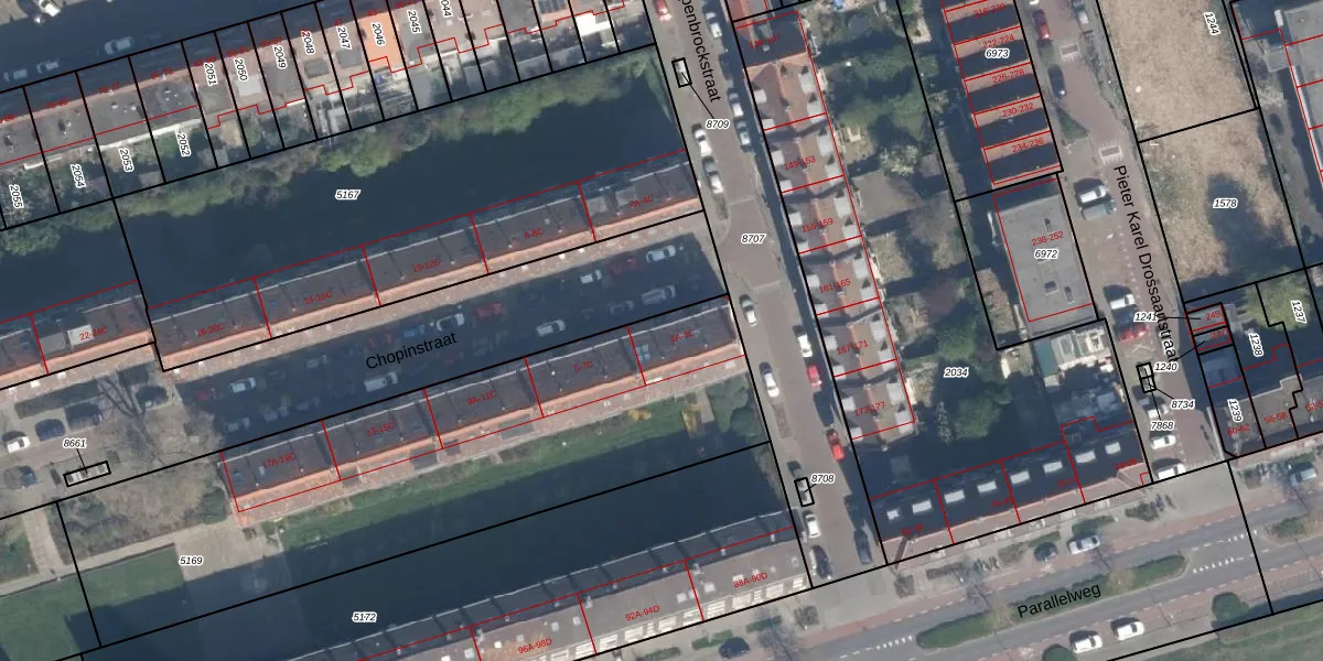 Het perceel waarop Chopinstraat 3-C staat heeft een oppervlakte van 2447 m². Dit is een zeer groot perceel. De perceeloppervlakte wordt geregistreerd door het Kadaster. Gedetailleerde informatie over de maten van dit perceel kunt u vinden in het rapport Kadastrale kaart met maatvoering van Chopinstraat 3-C.