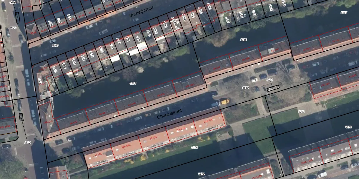 Chopinstraat 36-B is gelegen op kadastraal perceel VDG00D5165. Deze kadastrale aanduiding is uniek en wordt gebruikt door het Kadaster om eigendomsrechten en andere zakelijke rechten vast te leggen. Het perceel maakt onderdeel uit van de kadastrale gemeente Vlaardingen.
