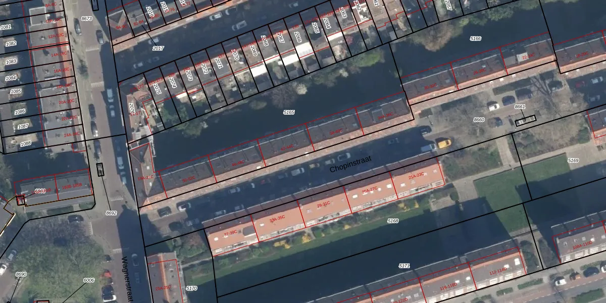 Chopinstraat 42 is gelegen op kadastraal perceel VDG00D5165. Deze kadastrale aanduiding is uniek en wordt gebruikt door het Kadaster om eigendomsrechten en andere zakelijke rechten vast te leggen. Het perceel maakt onderdeel uit van de kadastrale gemeente Vlaardingen.