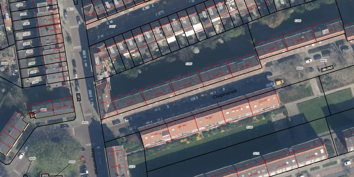 Het perceel waarop Chopinstraat 44-B staat heeft een oppervlakte van 2235 m². Dit is een zeer groot perceel. De perceeloppervlakte wordt geregistreerd door het Kadaster. Gedetailleerde informatie over de maten van dit perceel kunt u vinden in het rapport Kadastrale kaart met maatvoering van Chopinstraat 44-B.