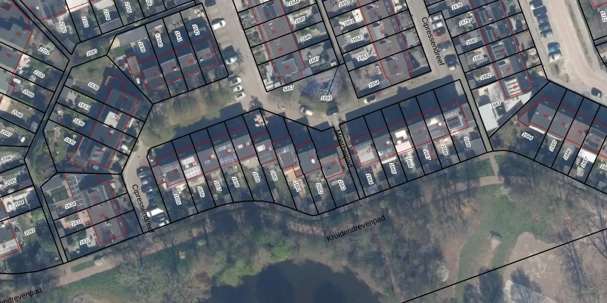 Het perceel waarop Cipressendreef 15 staat heeft een oppervlakte van 195 m². Dit is een middelgroot perceel. De perceeloppervlakte wordt geregistreerd door het Kadaster. Gedetailleerde informatie over de maten van dit perceel kunt u vinden in het rapport Kadastrale kaart met maatvoering van Cipressendreef 15.