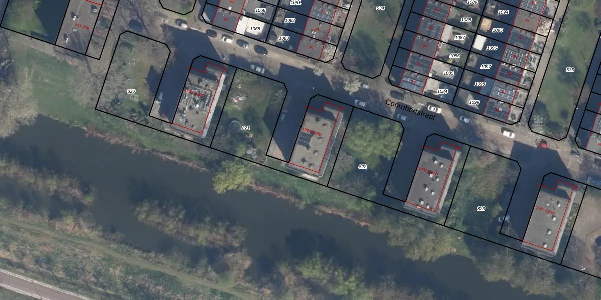 Het perceel waarop Coornhertstraat 201-B staat heeft een oppervlakte van 947 m². Dit is een groot perceel. De perceeloppervlakte wordt geregistreerd door het Kadaster. Gedetailleerde informatie over de maten van dit perceel kunt u vinden in het rapport Kadastrale kaart met maatvoering van Coornhertstraat 201-B.