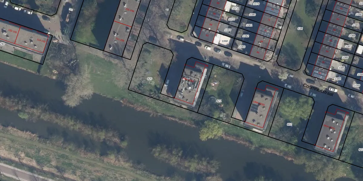 Het perceel waarop Coornhertstraat 209-C staat heeft een oppervlakte van 930 m². Dit is een groot perceel. De perceeloppervlakte wordt geregistreerd door het Kadaster. Gedetailleerde informatie over de maten van dit perceel kunt u vinden in het rapport Kadastrale kaart met maatvoering van Coornhertstraat 209-C.