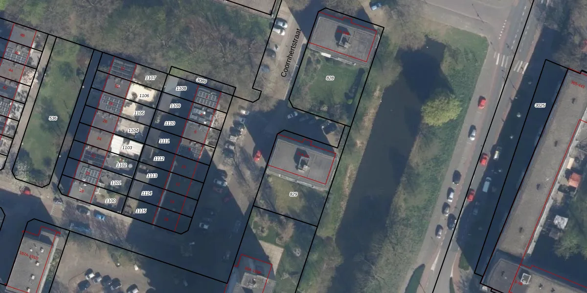 Het perceel waarop Coornhertstraat 21-A staat heeft een oppervlakte van 657 m². Dit is een groot perceel. De perceeloppervlakte wordt geregistreerd door het Kadaster. Gedetailleerde informatie over de maten van dit perceel kunt u vinden in het rapport Kadastrale kaart met maatvoering van Coornhertstraat 21-A.