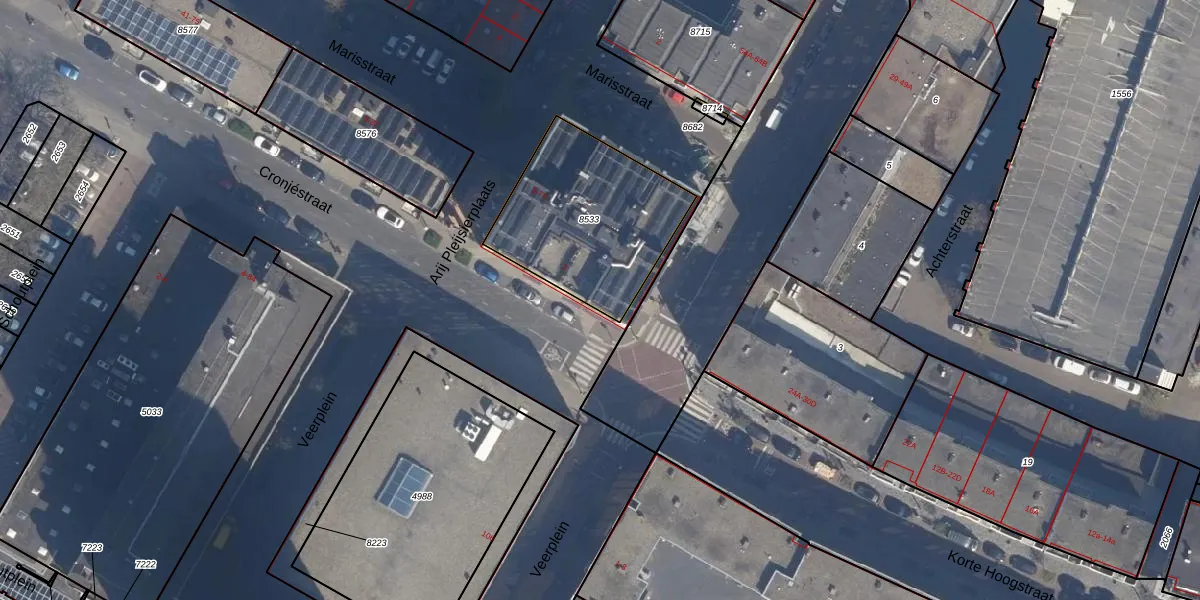 Het perceel waarop het adres ligt is VDG00-D-8533. De afkorting 'VDG00' staat voor kadastrale gemeente Vlaardingen. Het perceel is 654 m² groot. Dat is kleiner dan de gemiddelde perceeloppervlakte in Vlaardingen, dat op 1372,52 m² ligt. Het grootste perceel in de kadastrale gemeente is 1,02 km². Het kleinste perceel heeft een oppervlakte van 0 m². Er zijn 72 adressen aanwezig op het perceel. De huidige grenzen van het perceel zijn digitaal in de Basisregistratie Kadaster (BRK) geregistreerd op 04-04-2018.