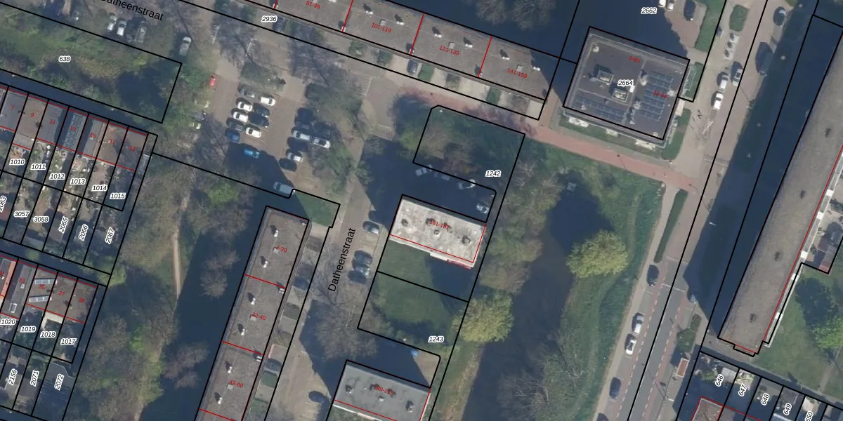 Het perceel waarop Datheenstraat 179 staat heeft een oppervlakte van 808 m². Dit is een groot perceel. De perceeloppervlakte wordt geregistreerd door het Kadaster. Gedetailleerde informatie over de maten van dit perceel kunt u vinden in het rapport Kadastrale kaart met maatvoering van Datheenstraat 179.