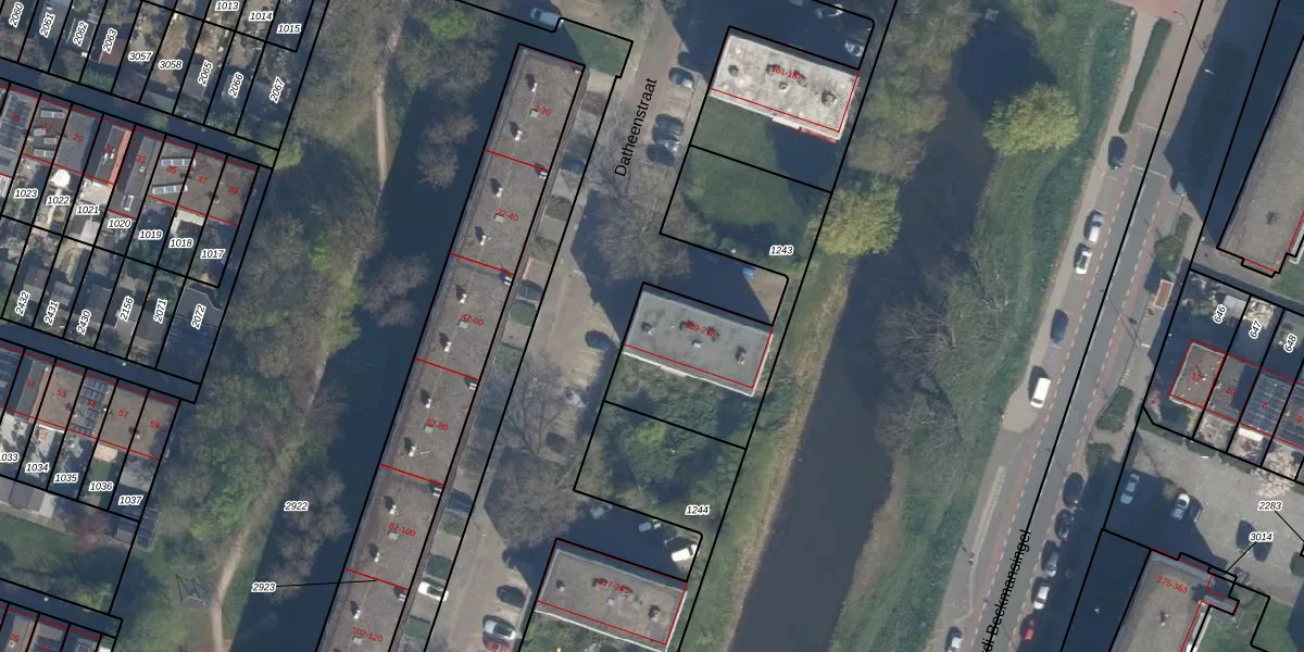 Datheenstraat 189 is gelegen op kadastraal perceel VDG00H1243. Deze kadastrale aanduiding is uniek en wordt gebruikt door het Kadaster om eigendomsrechten en andere zakelijke rechten vast te leggen. Het perceel maakt onderdeel uit van de kadastrale gemeente Vlaardingen.