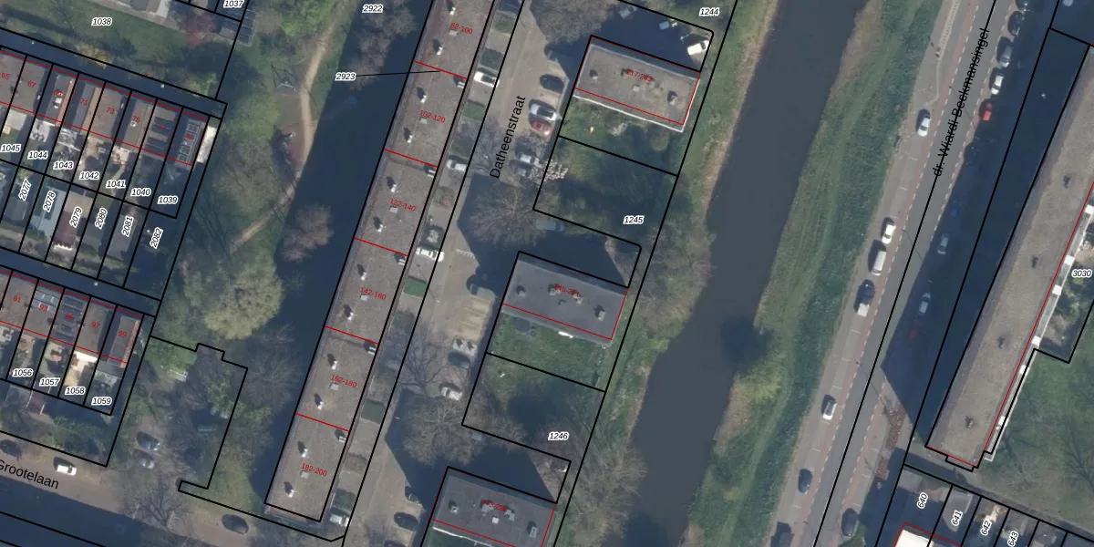 Het perceel waarop Datheenstraat 255 staat heeft een oppervlakte van 786 m². Dit is een groot perceel. De perceeloppervlakte wordt geregistreerd door het Kadaster. Gedetailleerde informatie over de maten van dit perceel kunt u vinden in het rapport Kadastrale kaart met maatvoering van Datheenstraat 255.