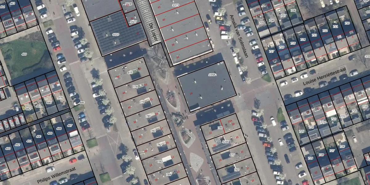 Gebruik de zoekbalk of klik op een perceel voor informatie over de adressen binnen dit perceel.