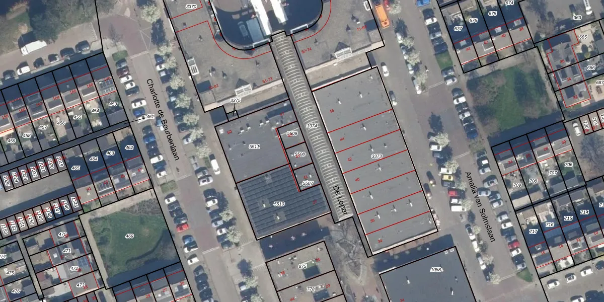 Het perceel waarop De Loper 43 staat heeft een oppervlakte van 53 m². Dit is een klein perceel. De perceeloppervlakte wordt geregistreerd door het Kadaster. Gedetailleerde informatie over de maten van dit perceel kunt u vinden in het rapport Kadastrale kaart met maatvoering van De Loper 43.