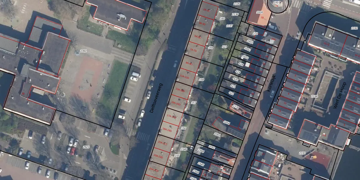 Het perceel waarop Delftseveerweg 13-C staat heeft een oppervlakte van 349 m². Dit is een groot perceel. De perceeloppervlakte wordt geregistreerd door het Kadaster. Gedetailleerde informatie over de maten van dit perceel kunt u vinden in het rapport Kadastrale kaart met maatvoering van Delftseveerweg 13-C.