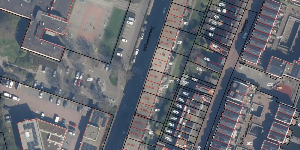 Delftseveerweg 21-A is gelegen op kadastraal perceel VDG00M155. Deze kadastrale aanduiding is uniek en wordt gebruikt door het Kadaster om eigendomsrechten en andere zakelijke rechten vast te leggen. Het perceel maakt onderdeel uit van de kadastrale gemeente Vlaardingen.