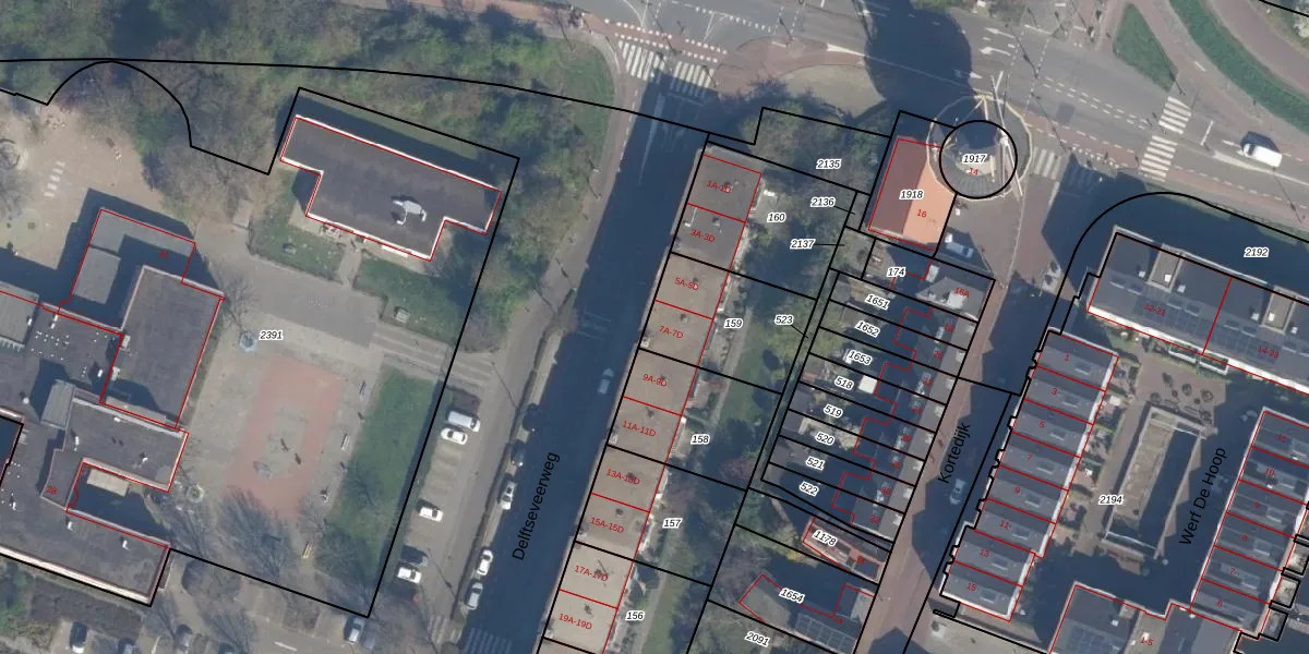 Het perceel waarop Delftseveerweg 7-A staat heeft een oppervlakte van 366 m². Dit is een groot perceel. De perceeloppervlakte wordt geregistreerd door het Kadaster. Gedetailleerde informatie over de maten van dit perceel kunt u vinden in het rapport Kadastrale kaart met maatvoering van Delftseveerweg 7-A.