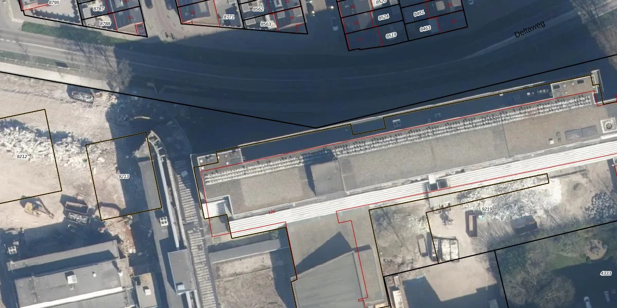 Het perceel waarop Deltaweg 186 staat heeft een oppervlakte van 6657 m². Dit is een zeer groot perceel. De perceeloppervlakte wordt geregistreerd door het Kadaster. Gedetailleerde informatie over de maten van dit perceel kunt u vinden in het rapport Kadastrale kaart met maatvoering van Deltaweg 186.