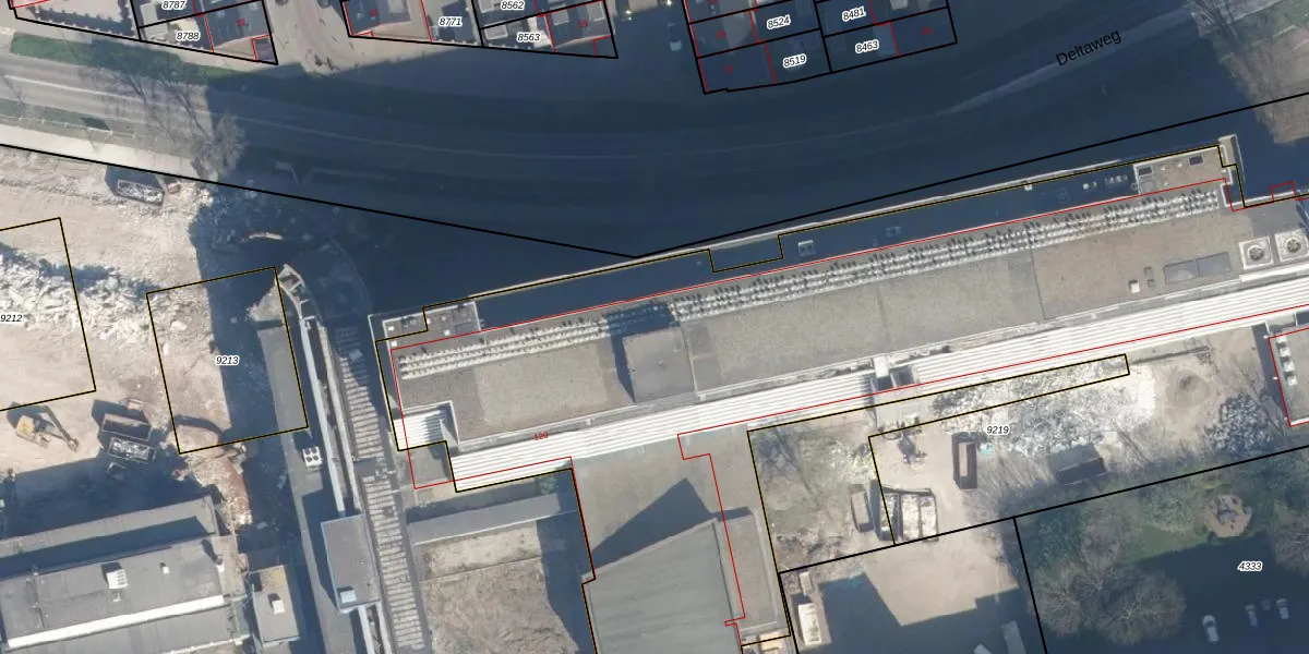 Het perceel waarop Deltaweg 220 staat heeft een oppervlakte van 6657 m². Dit is een zeer groot perceel. De perceeloppervlakte wordt geregistreerd door het Kadaster. Gedetailleerde informatie over de maten van dit perceel kunt u vinden in het rapport Kadastrale kaart met maatvoering van Deltaweg 220.
