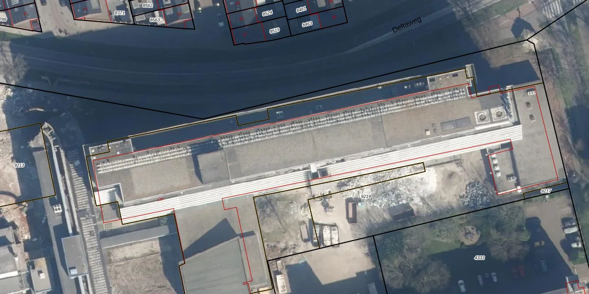 Het perceel waarop Deltaweg 376 staat heeft een oppervlakte van 6657 m². Dit is een zeer groot perceel. De perceeloppervlakte wordt geregistreerd door het Kadaster. Gedetailleerde informatie over de maten van dit perceel kunt u vinden in het rapport Kadastrale kaart met maatvoering van Deltaweg 376.