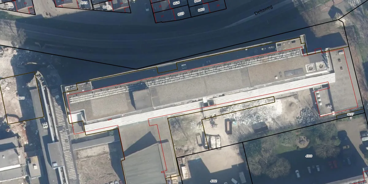 Het perceel waarop Deltaweg 464 staat heeft een oppervlakte van 6657 m². Dit is een zeer groot perceel. De perceeloppervlakte wordt geregistreerd door het Kadaster. Gedetailleerde informatie over de maten van dit perceel kunt u vinden in het rapport Kadastrale kaart met maatvoering van Deltaweg 464.
