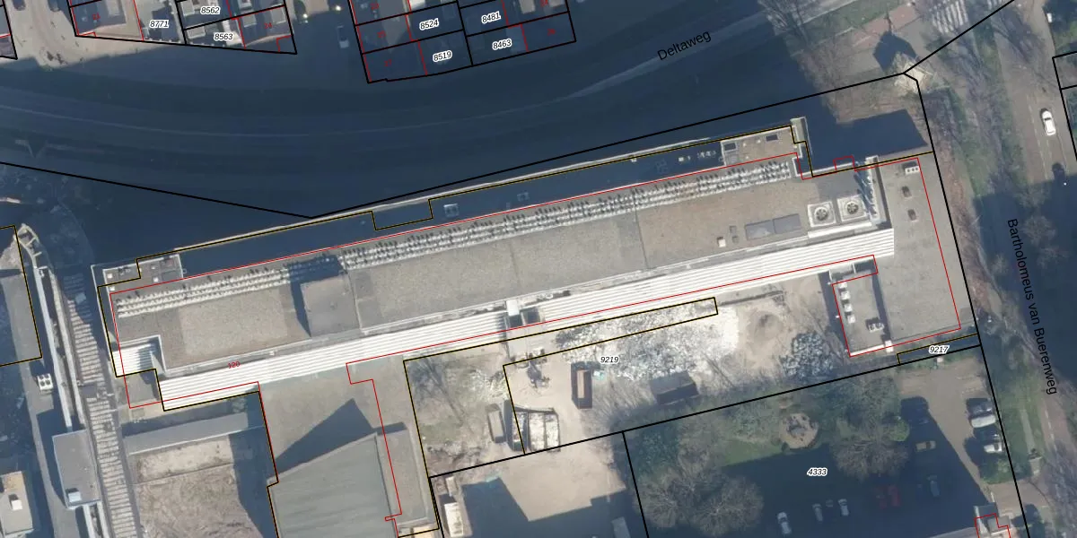 Het perceel waarop Deltaweg 494 staat heeft een oppervlakte van 6657 m². Dit is een zeer groot perceel. De perceeloppervlakte wordt geregistreerd door het Kadaster. Gedetailleerde informatie over de maten van dit perceel kunt u vinden in het rapport Kadastrale kaart met maatvoering van Deltaweg 494.