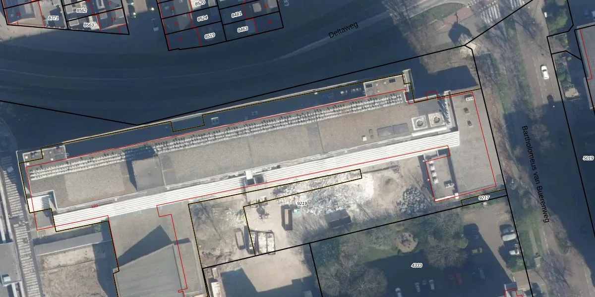 Het perceel waarop het adres ligt is VDG00-D-9219. De afkorting 'VDG00' staat voor kadastrale gemeente Vlaardingen. De gemiddelde perceeloppervlakte in de kadastrale gemeente Vlaardingen is 1372,24 m². Dit perceel is met zijn 6657 m² dus groter dan gemiddeld. Het kleinste perceel in de kadastrale gemeente is 0 m² groot. De grootste perceeloppervlakte is 1,02 km². Op het perceel zijn 279 adressen aanwezig. In de Basisregistratie Kadaster (BRK) werden de grenzen van het perceel geregistreerd op 30-07-2025.