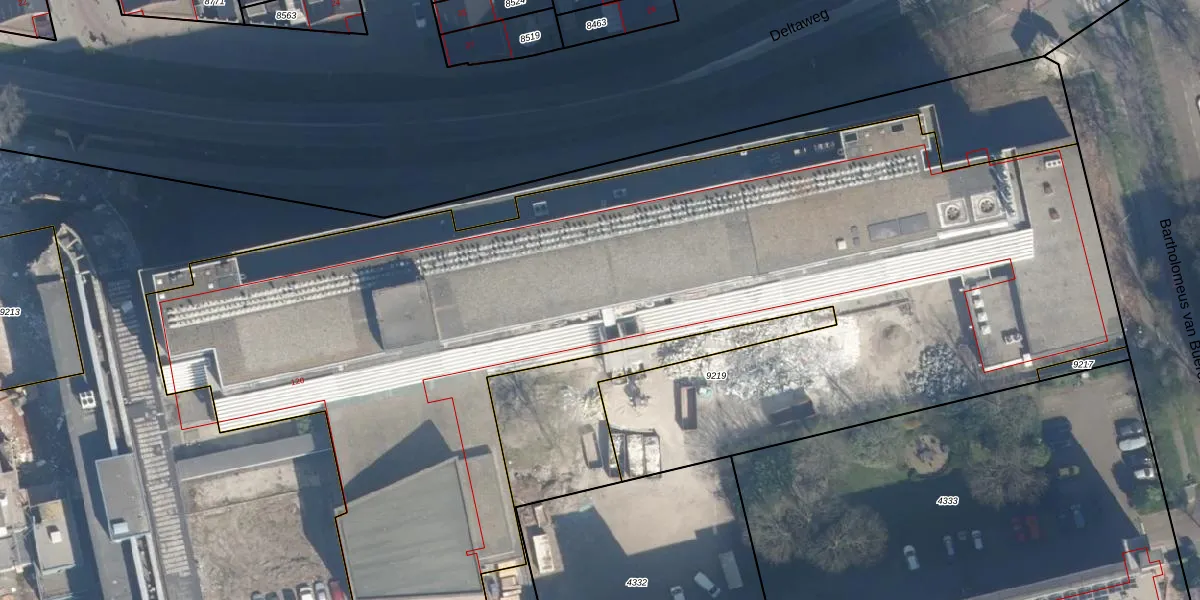 Het perceel waarop het adres ligt is VDG00-D-9219. De afkorting 'VDG00' staat voor kadastrale gemeente Vlaardingen. De gemiddelde perceeloppervlakte in de kadastrale gemeente Vlaardingen is 1372,24 m². Dit perceel is met zijn 6657 m² dus groter dan gemiddeld. Het kleinste perceel in de kadastrale gemeente is 0 m² groot. De grootste perceeloppervlakte is 1,02 km². Op het perceel zijn 279 adressen aanwezig. In de Basisregistratie Kadaster (BRK) werden de grenzen van het perceel geregistreerd op 30-07-2025.