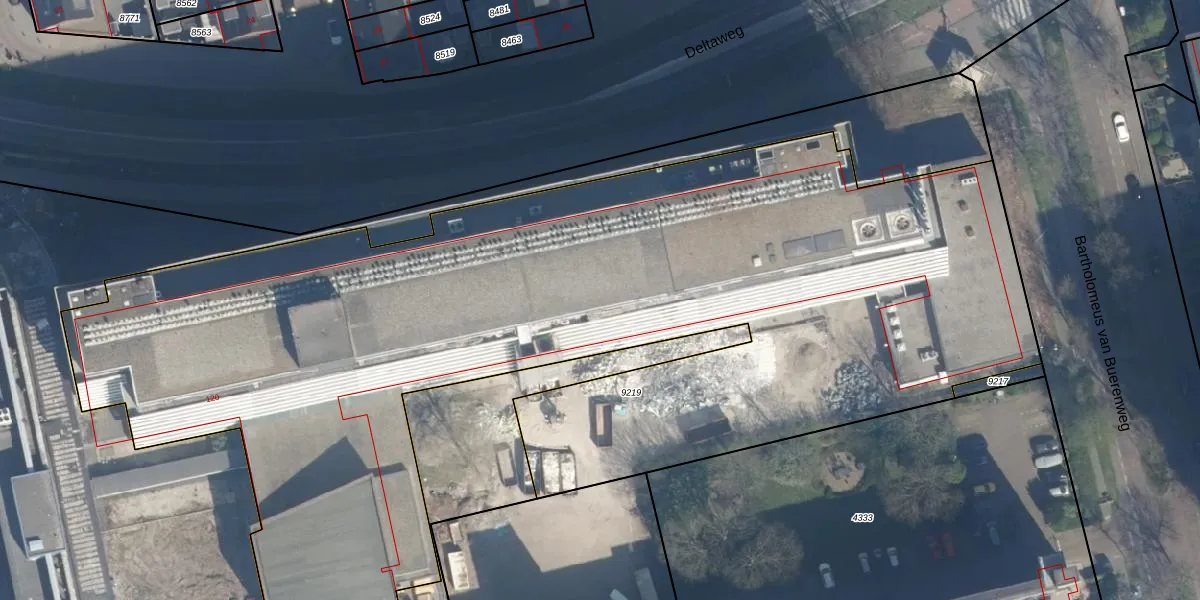 Het perceel waarop Deltaweg 664 staat heeft een oppervlakte van 6657 m². Dit is een zeer groot perceel. De perceeloppervlakte wordt geregistreerd door het Kadaster. Gedetailleerde informatie over de maten van dit perceel kunt u vinden in het rapport Kadastrale kaart met maatvoering van Deltaweg 664.