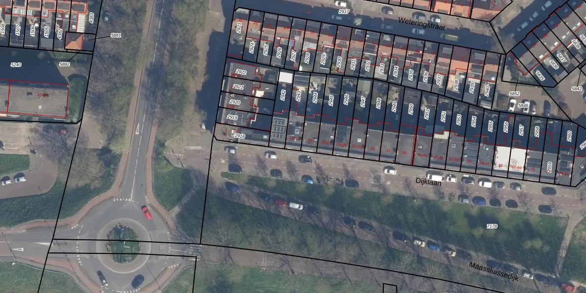 Dijklaan 13 is gelegen op kadastraal perceel VDG00D2943. Deze kadastrale aanduiding is uniek en wordt gebruikt door het Kadaster om eigendomsrechten en andere zakelijke rechten vast te leggen. Het perceel maakt onderdeel uit van de kadastrale gemeente Vlaardingen.