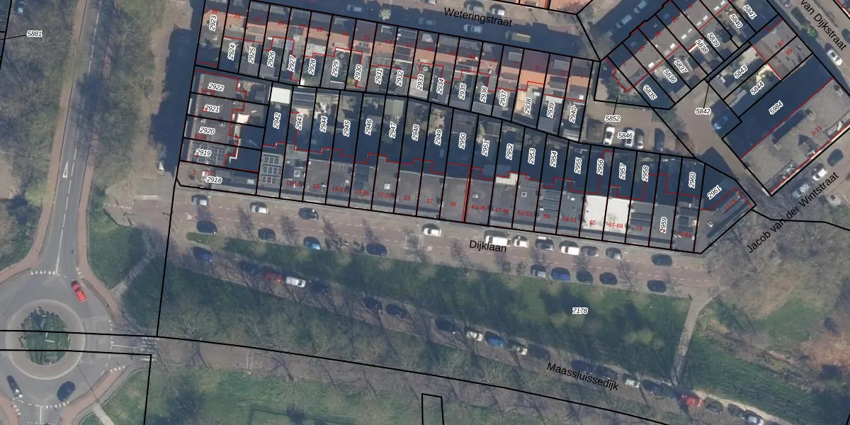 Dijklaan 37 is gelegen op kadastraal perceel VDG00D2949. Deze kadastrale aanduiding is uniek en wordt gebruikt door het Kadaster om eigendomsrechten en andere zakelijke rechten vast te leggen. Het perceel maakt onderdeel uit van de kadastrale gemeente Vlaardingen.
