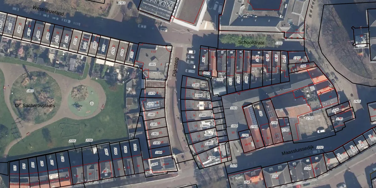 Het perceel waarop het adres ligt is VDG00-M-1986. De afkorting 'VDG00' staat voor kadastrale gemeente Vlaardingen. Het perceel is kleiner dan gemiddeld in Vlaardingen. Het perceel is 88 m² groot, terwijl het gemiddelde ligt op 1372,52 m². De grootste perceeloppervlakte in de kadastrale gemeente is 1,02 km². De kleinste oppervlakte bedraagt 0 m². Er zijn geen andere adressen aanwezig op het perceel. De laatste wijziging in het de Basisregistratie Kadaster (BRK) was op 16-04-2008.