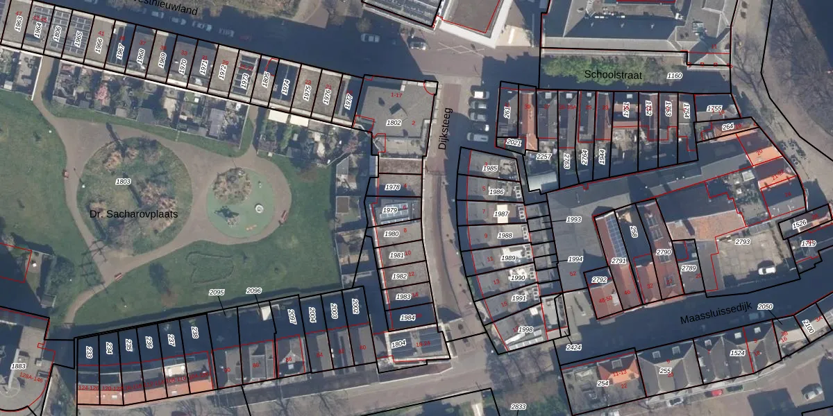 Gebruik de zoekbalk of klik op een perceel voor informatie over de adressen binnen dit perceel.