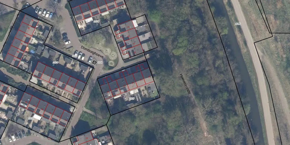 Domburghoeve 21 is gelegen op kadastraal perceel VDG00K2375. Deze kadastrale aanduiding is uniek en wordt gebruikt door het Kadaster om eigendomsrechten en andere zakelijke rechten vast te leggen. Het perceel maakt onderdeel uit van de kadastrale gemeente Vlaardingen.