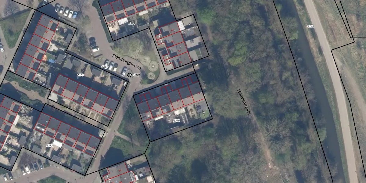 Het perceel waarop Domburghoeve 23 staat heeft een oppervlakte van 982 m². Dit is een groot perceel. De perceeloppervlakte wordt geregistreerd door het Kadaster. Gedetailleerde informatie over de maten van dit perceel kunt u vinden in het rapport Kadastrale kaart met maatvoering van Domburghoeve 23.
