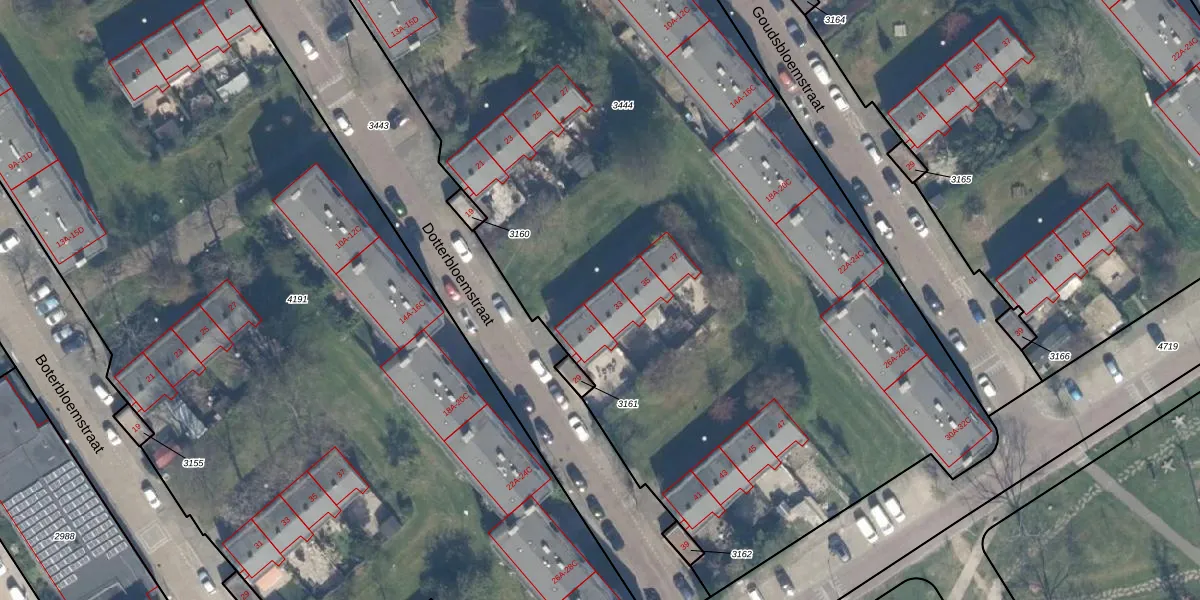 Het perceel waarop Dotterbloemstraat 33 staat heeft een oppervlakte van 8666 m². Dit is een zeer groot perceel. De perceeloppervlakte wordt geregistreerd door het Kadaster. Gedetailleerde informatie over de maten van dit perceel kunt u vinden in het rapport Kadastrale kaart met maatvoering van Dotterbloemstraat 33.
