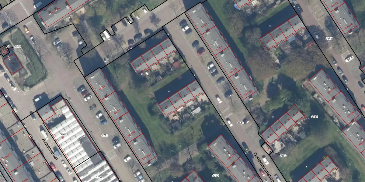 Het perceel waarop Dotterbloemstraat 4 staat heeft een oppervlakte van 8456 m². Dit is een zeer groot perceel. De perceeloppervlakte wordt geregistreerd door het Kadaster. Gedetailleerde informatie over de maten van dit perceel kunt u vinden in het rapport Kadastrale kaart met maatvoering van Dotterbloemstraat 4.